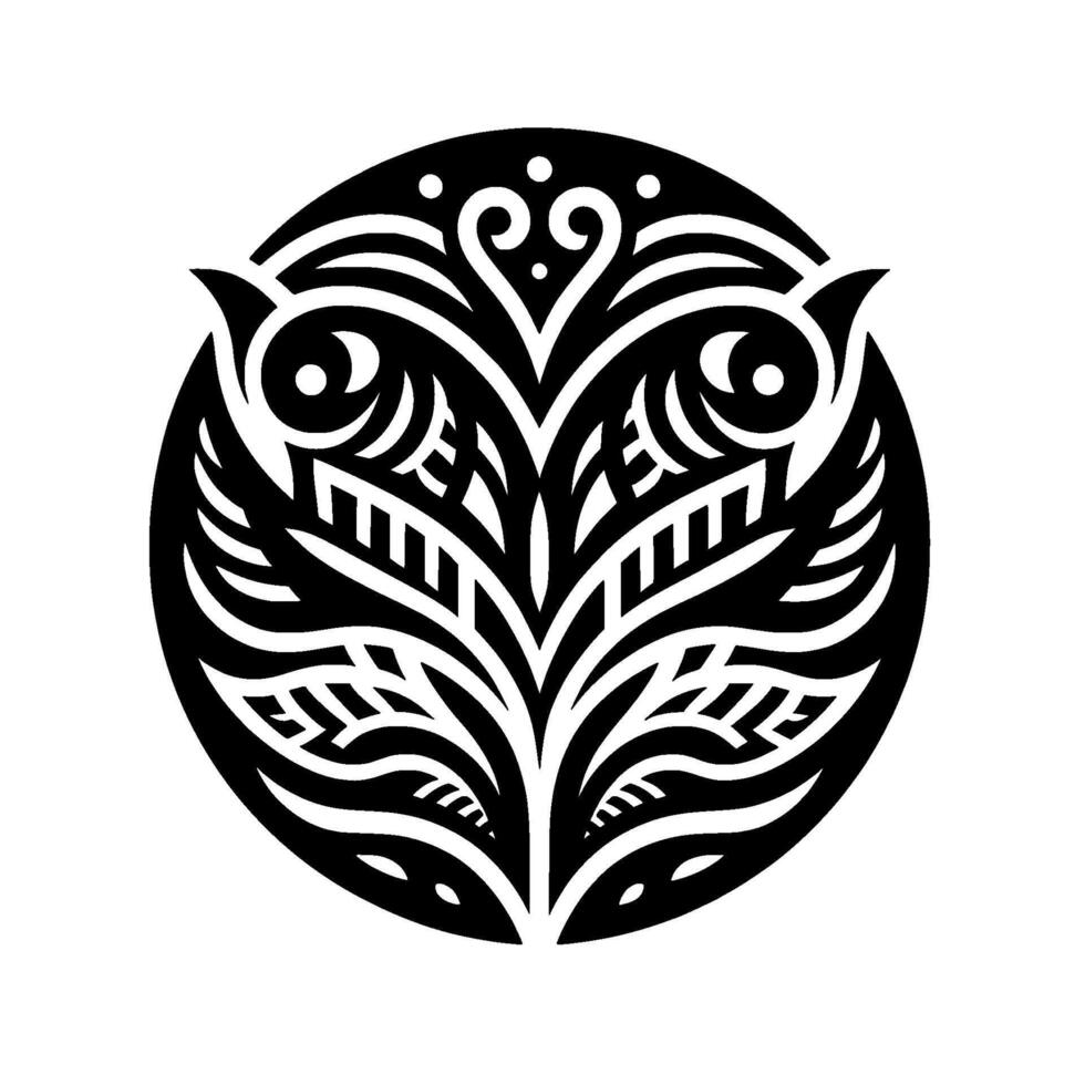 A symmetrical black and white , likely a , featuring stylized floral and avian elements within a circular form on a plain white backdrop. vector