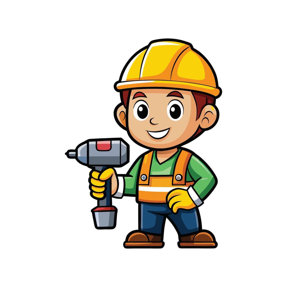 Employee Actively Using Drill Bit for Projects Pro Vector