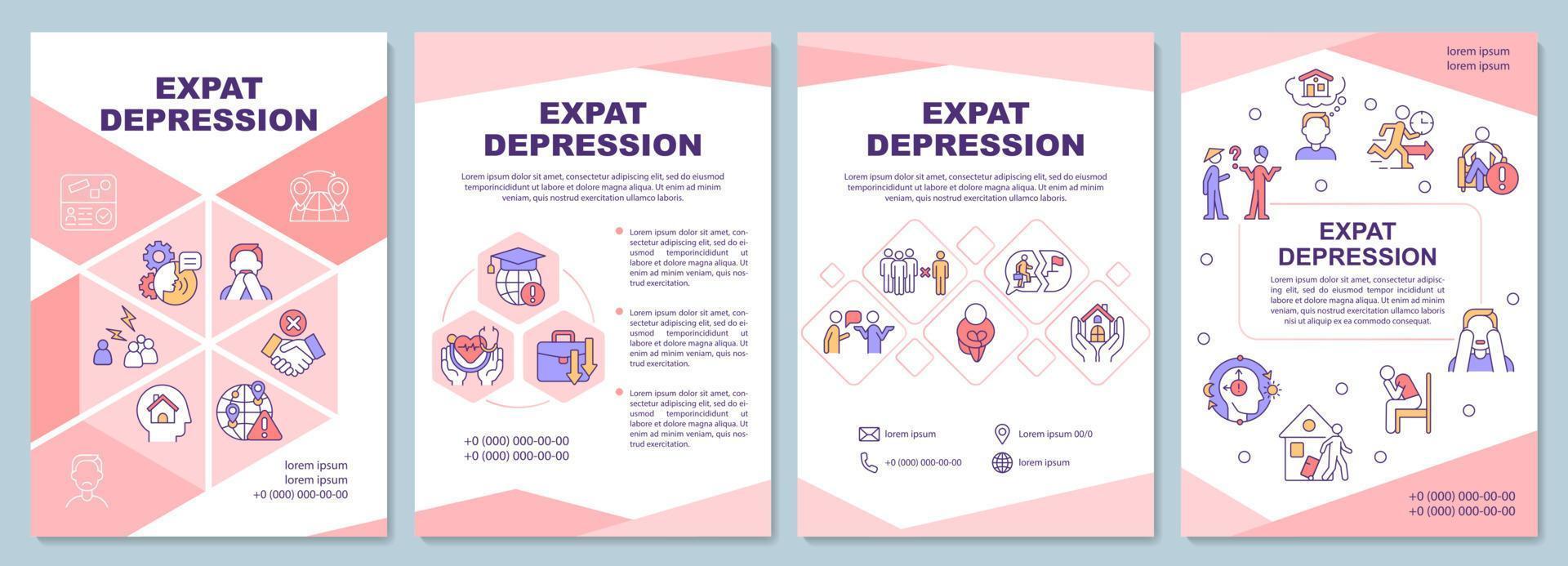 Expat depression brochure template. Feel anxious when relocating. Flyer, booklet, leaflet print, cover design with linear icons. Vector layouts for presentation, annual reports, advertisement pages Pro Vector