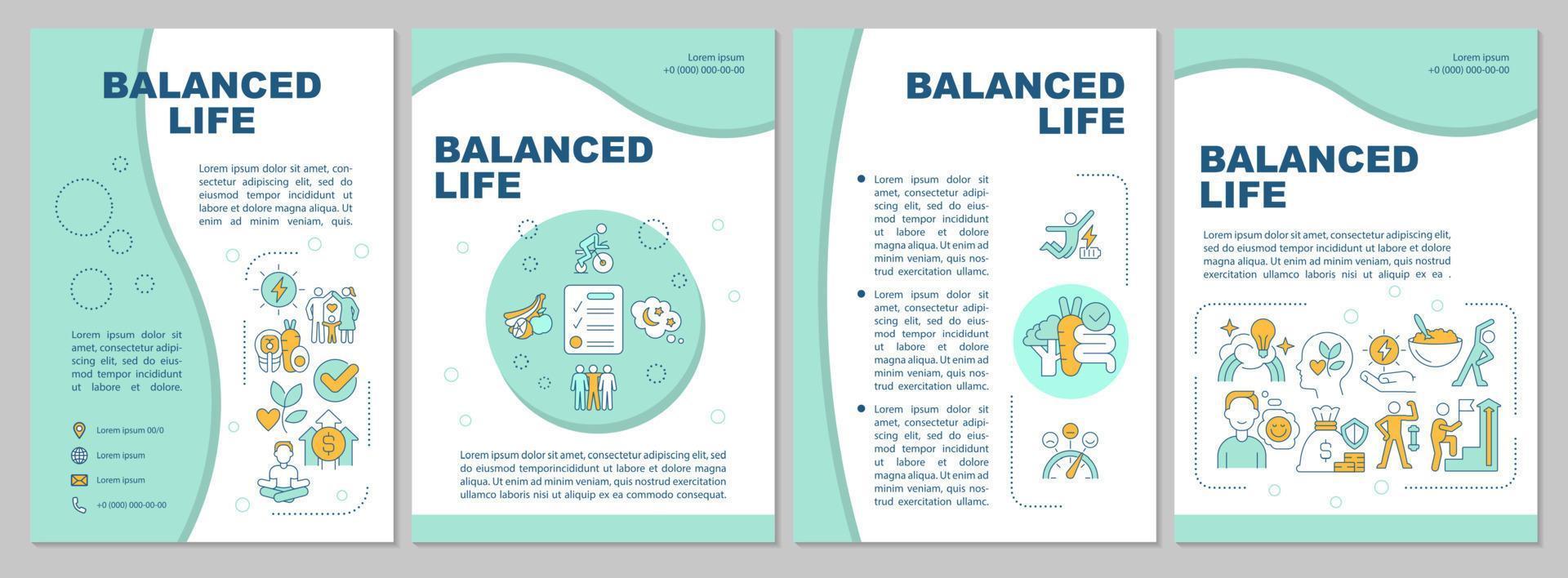 Balanced life mint brochure template. Selfcare lifestyle. Booklet print design with linear icons. Vector layouts for presentation, annual reports, ads. Arial, Myriad Pro-Regular fonts used Pro Vector
