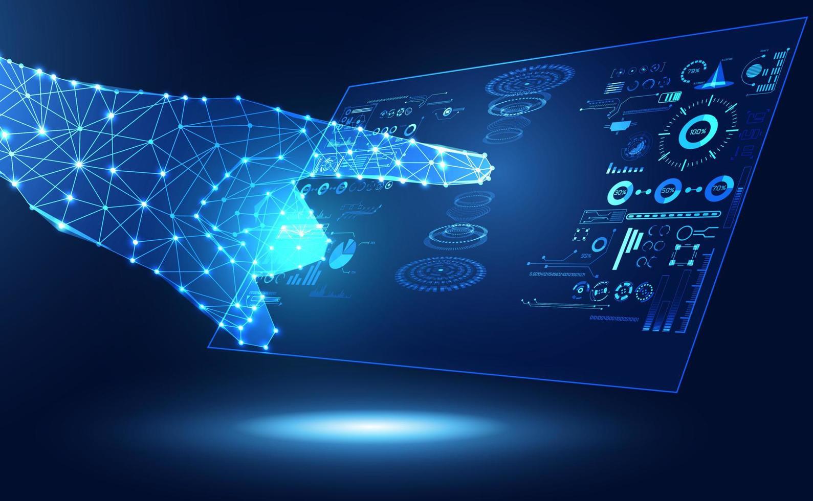 abstract technology ui futuristic concept finger interface hologram elements of digital data chart, communication, computing and circle percent vitality innovation on hi tech future design background Pro Vector