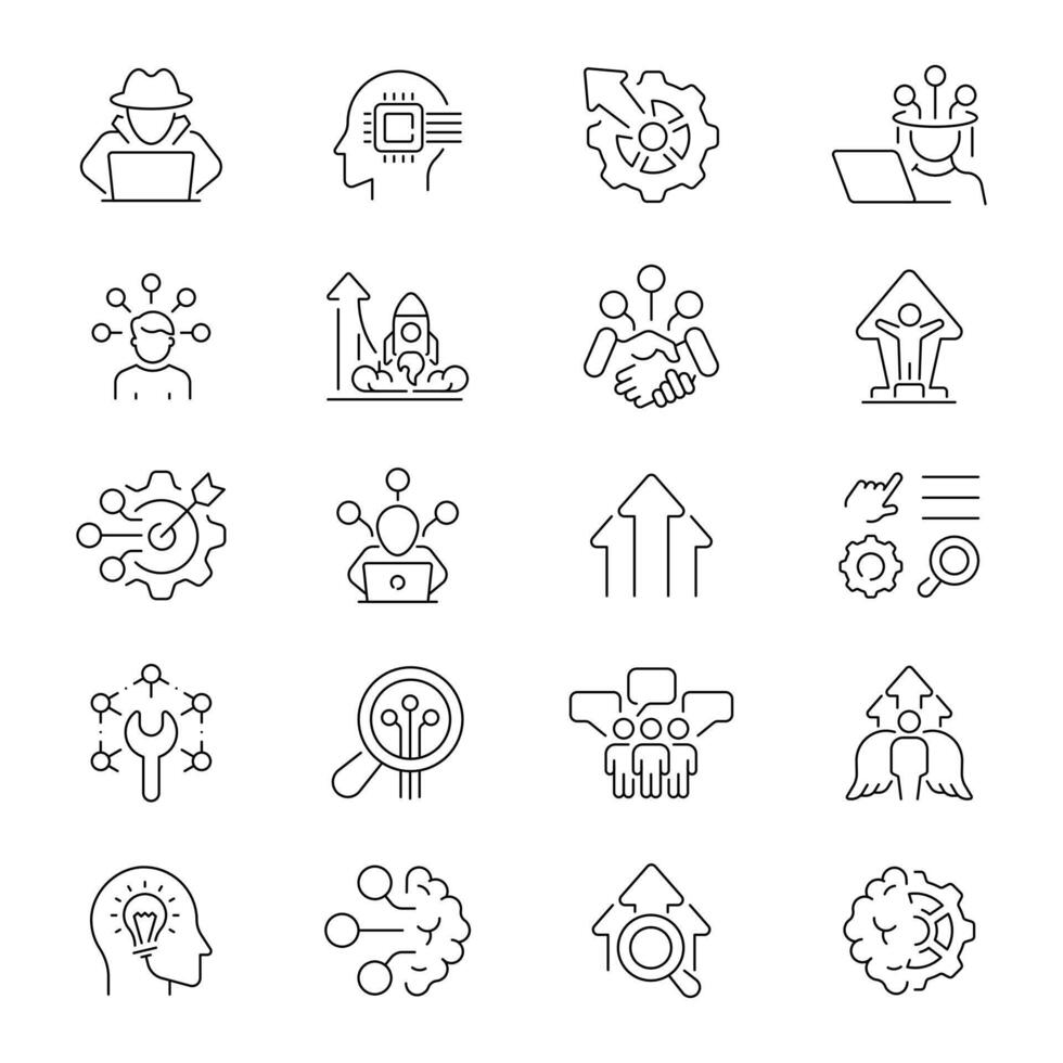 Soft skills icon set. Soft skills icons in line style. Thinking, leadership, connection, awareness, ideas, collaboration, presentation, programming, Soft skills related icons. Editable stroke Pro Vector