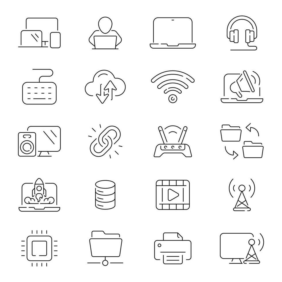 Computer icons. Computer icon set. Network, website, server, web design, hardware, software, programming, computer related thin line icon collection. Editable stroke Pro Vector
