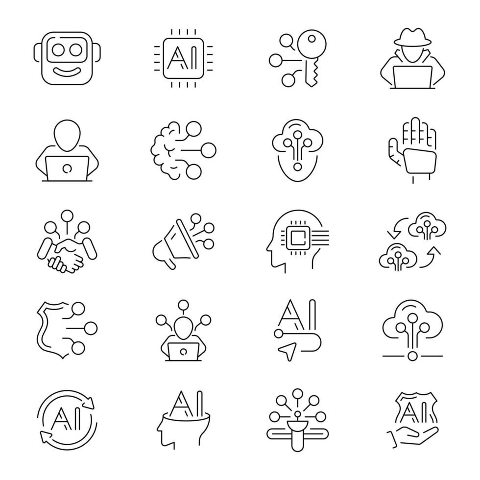 Artificial intelligence icons collection. AI icon set. Artificial intelligence, brain, intelligence, computing innovation related thin line icon collection. Editable stroke Pro Vector