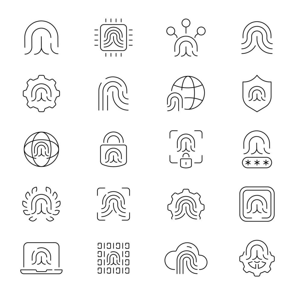 Touch ID icons. Finger print icons. Biometric id, unique scan, line signature, identity, Fingerprint, touch ID related icon set. Thin line icons, Editable stroke Pro Vector