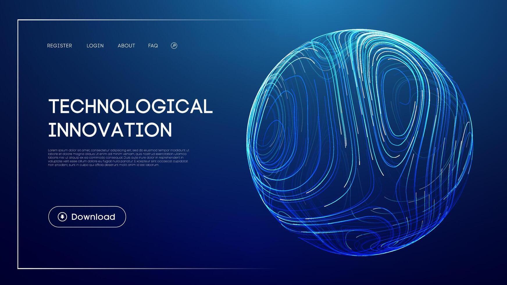 Technological innovation concept with abstract glowing sphere, futuristic blue background, advanced digital technology, artificial intelligence systems, and modern UI design for progress and Pro Vector