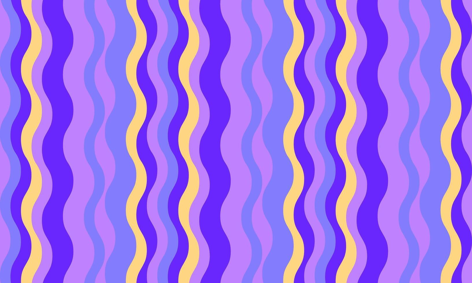 Vibrant wavy stripes in purple, lavender, and yellow create a dynamic, retroinspired pattern. Perfect for backgrounds, textiles, website design, or any project needing a playful, energetic aesthetic. Pro Vector