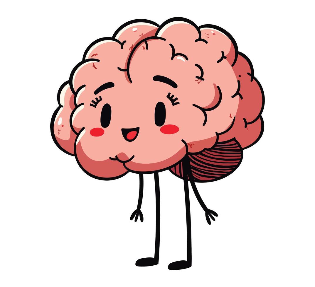 Brain character with cute face and simple body line. Cute brain with a smiling expression and minimalistic body drawing, isolated on white. Ideal for educational designs. Pro Vector