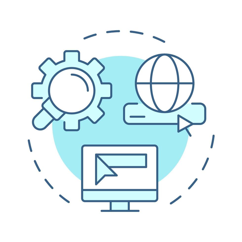 Discoverable soft blue concept icon. Easy to find and index information. Characteristic of PWAs. Round shape line illustration. Abstract idea. Graphic design. Easy to use in presentation Pro Vector