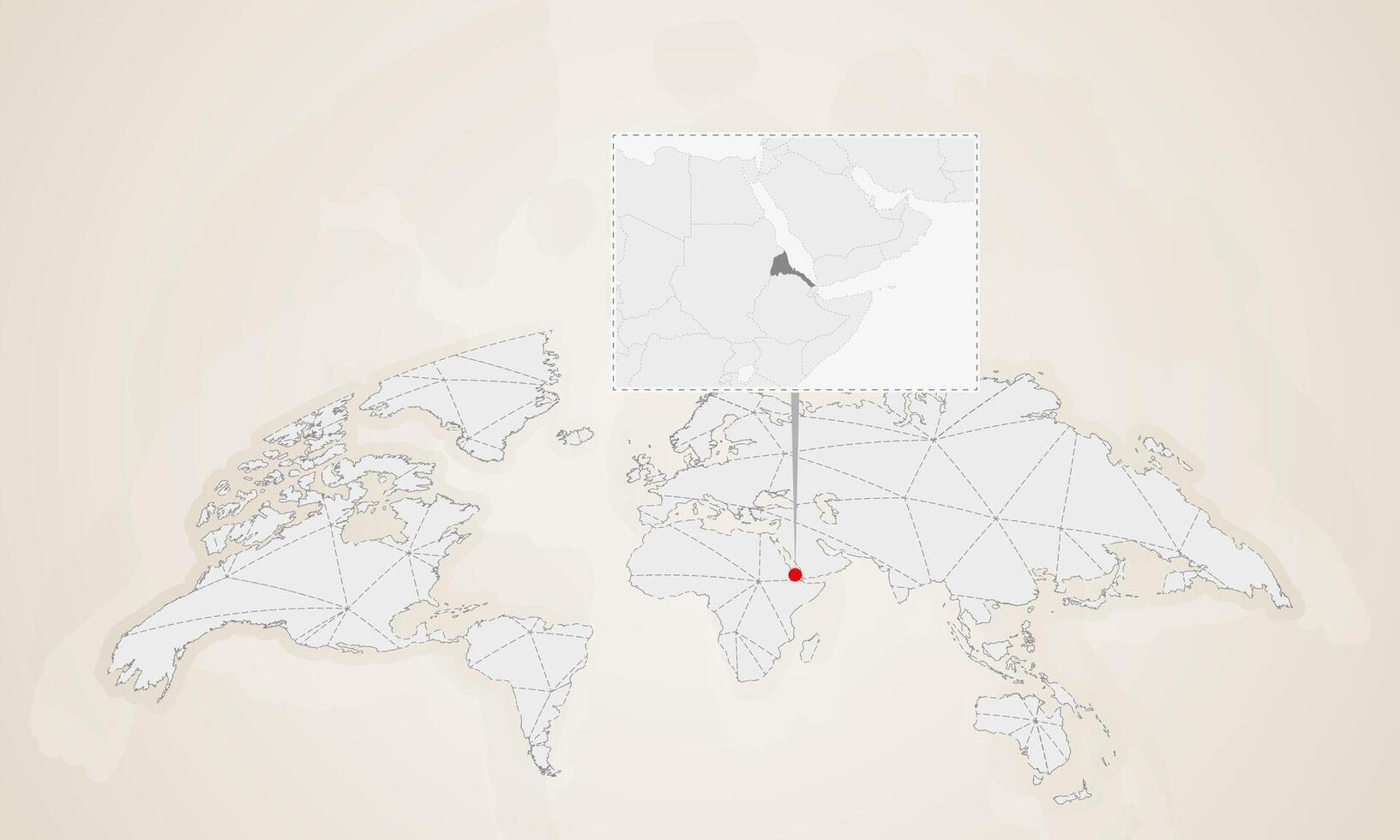 Map of Eritrea with neighbor countries pinned on world map. Pro Vector