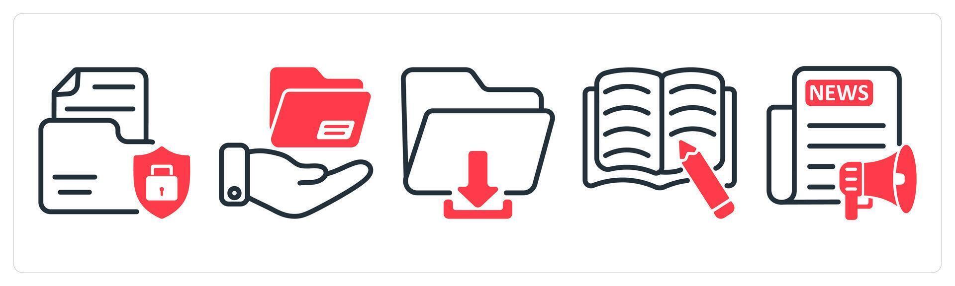 A set of 5 business icons as document security, file sharing, download file Pro Vector