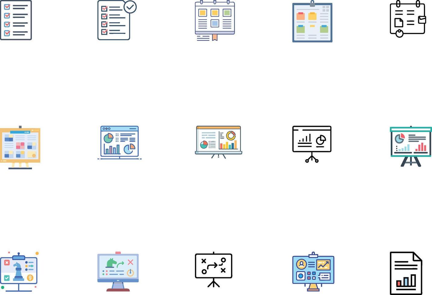 A set of icons that include a computer, a monitor, and a document Pro Vector