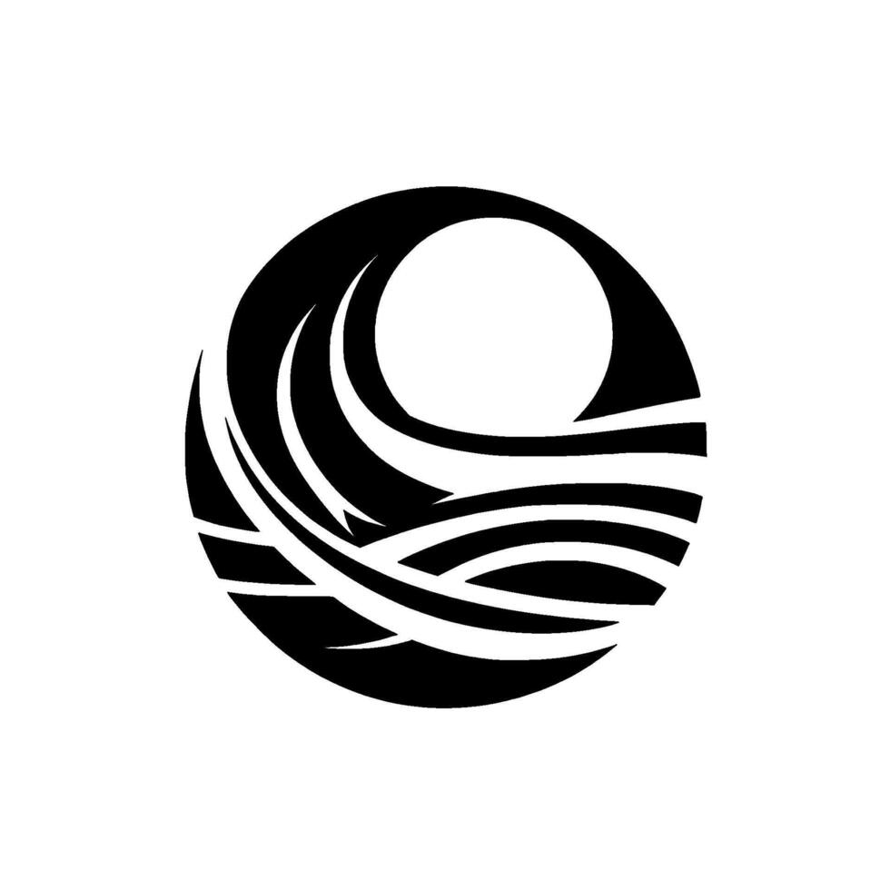 Abstract wave and moon design, featuring a circular composition with contrasting black and white elements, evoking tranquility. vector