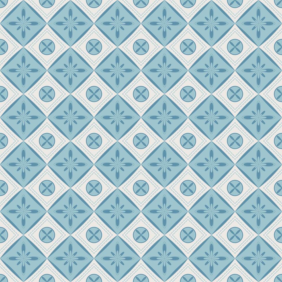 Seamless pattern with geometric diamond shapes and flowers. Can be used to fabric design, wallpaper, decorative paper, web design, etc. Swatches of seamless patterns included in the file. Pro Vector