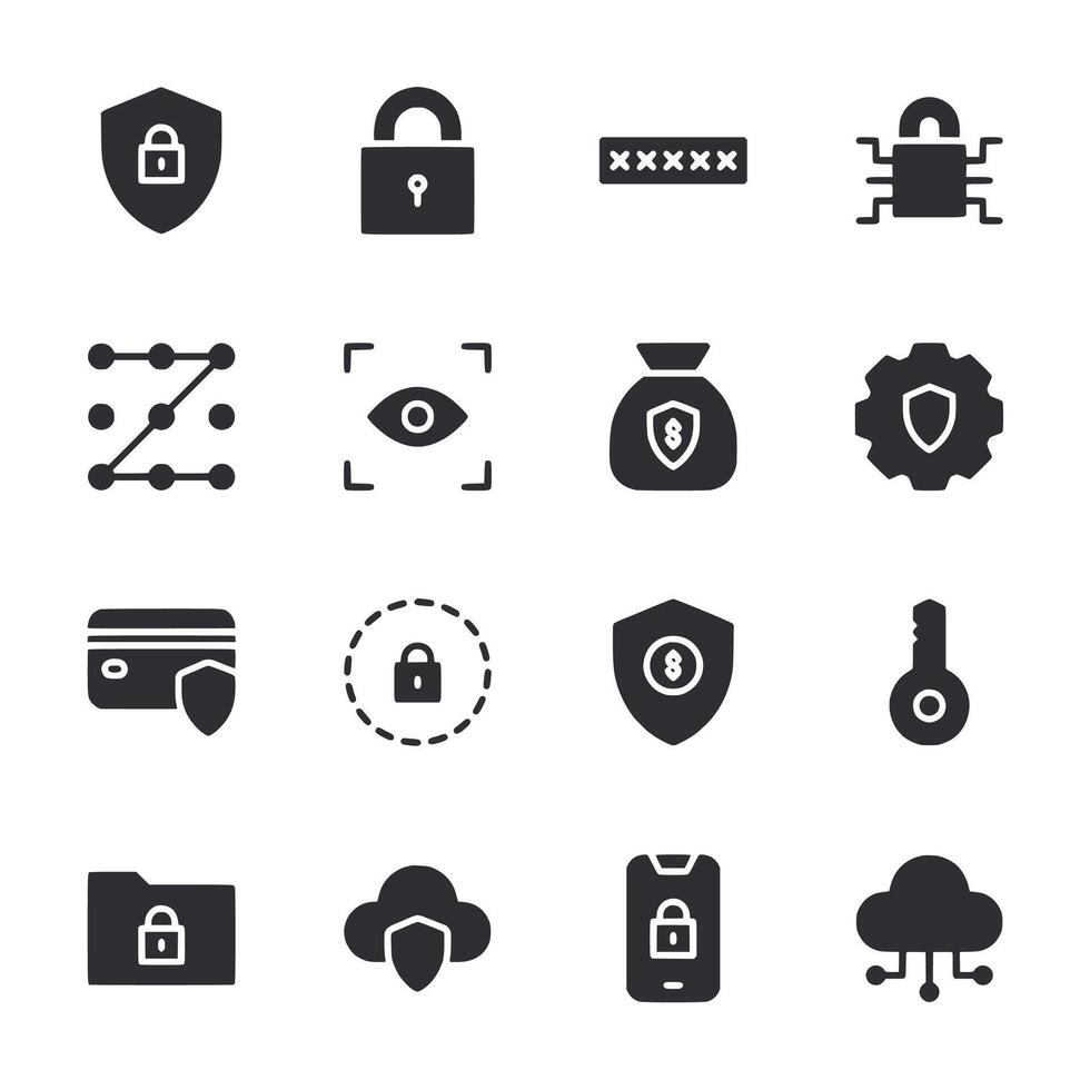 A set of security icons including a key, a lock, a wallet, and a phone Pro Vector