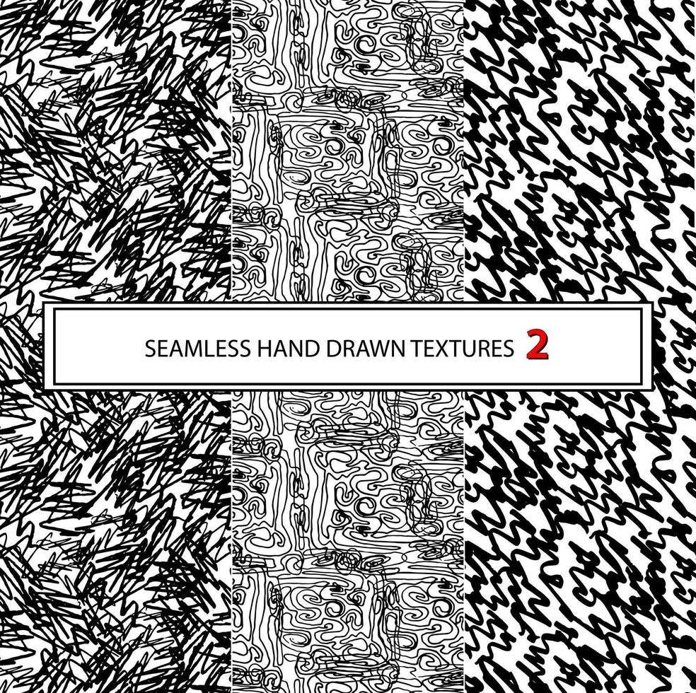 Set of three hand-drawn seamless black and white simple patterns. Dots, lines, and crosses. Backgrounds for website, blog, social network, banner, brochure, flyer, and poster. Vector texture Pro Vector