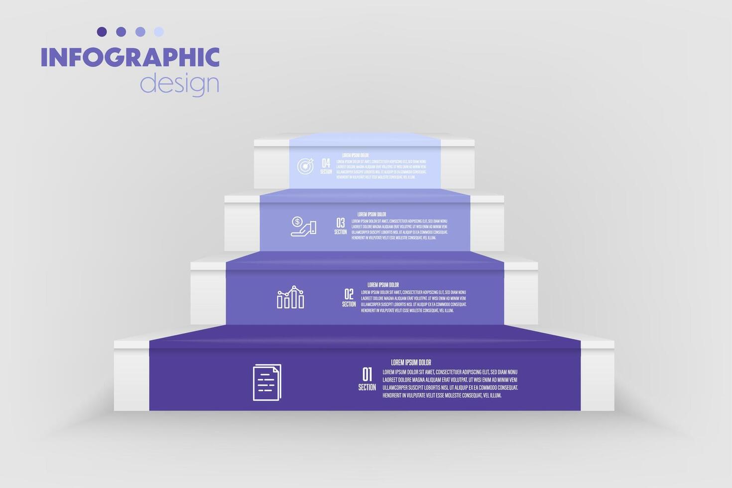 Stairs infographic template for workflow presentation with steps icons, 3D 4 step diagram. Pro Vector
