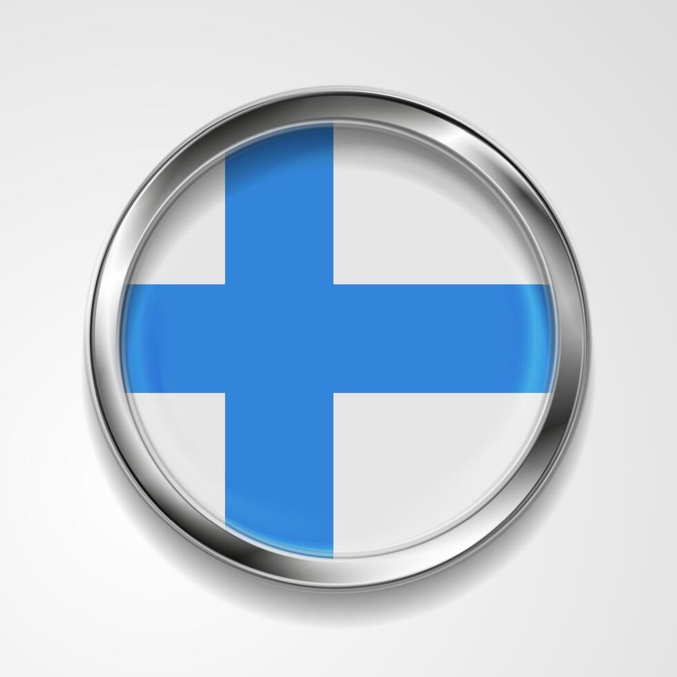 Abstract button with metallic frame. Finnish flag Pro Vector