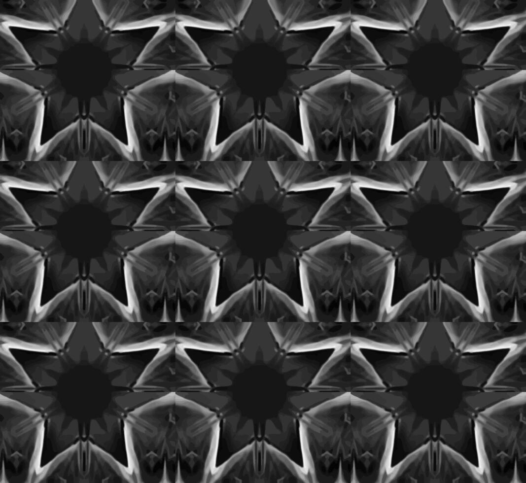 Monochrome geometric pattern with repeating star-like motifs. Dark gray and white tones creating a high contrast design. Symmetrical arrangement with a tessellated effect. Intricate details. Pro Vector