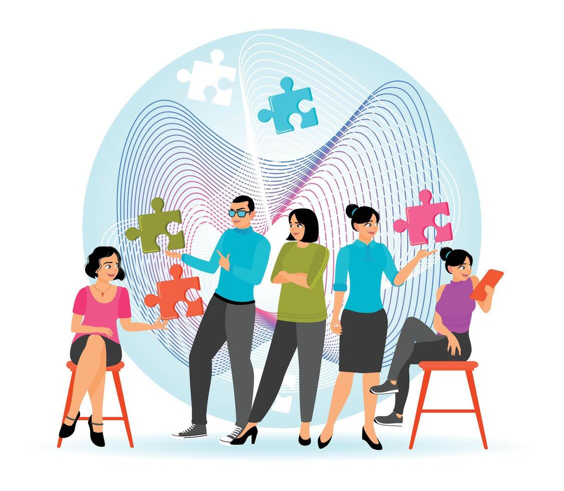 Workers are having a meeting in the office. collective thinking and brainstorming. Pro Vector