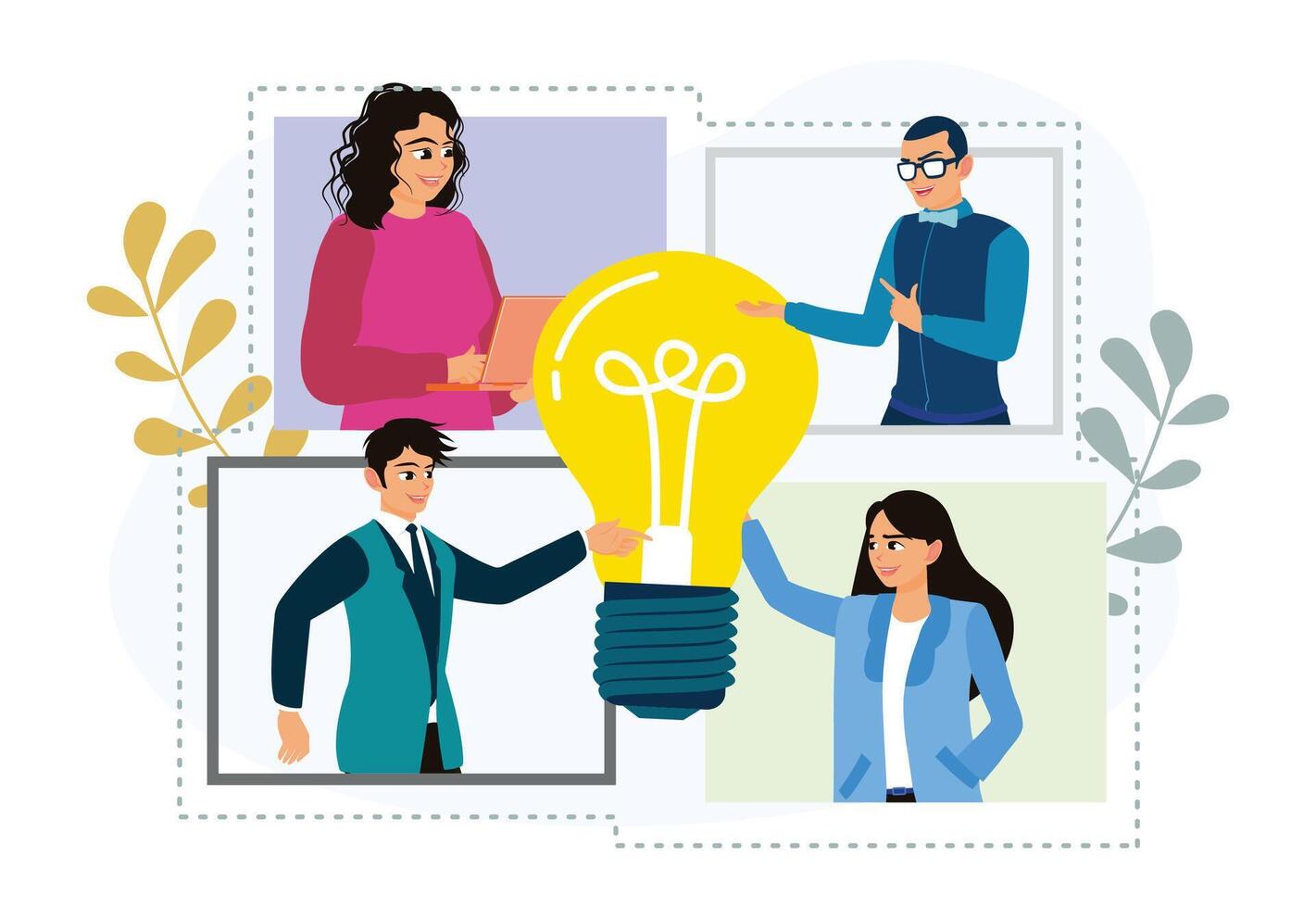 Group of diverse colleagues brainstorming and developing business strategy. Pro Vector
