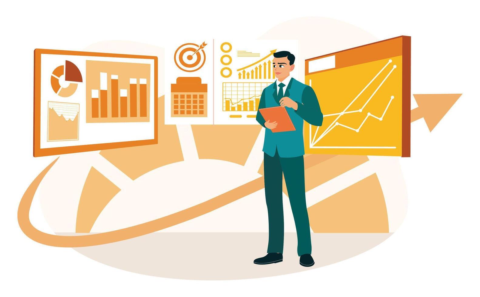 Entrepreneurs use computers to automate data management analysis. Pro Vector