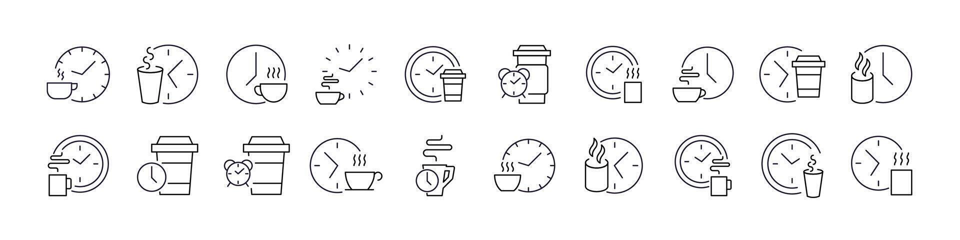 Coffee Break Line Icon Bundle. Coffee and Clock Outline Signs for Graphic and Web Design, Apps, Adverts, Various Cards Pro Vector