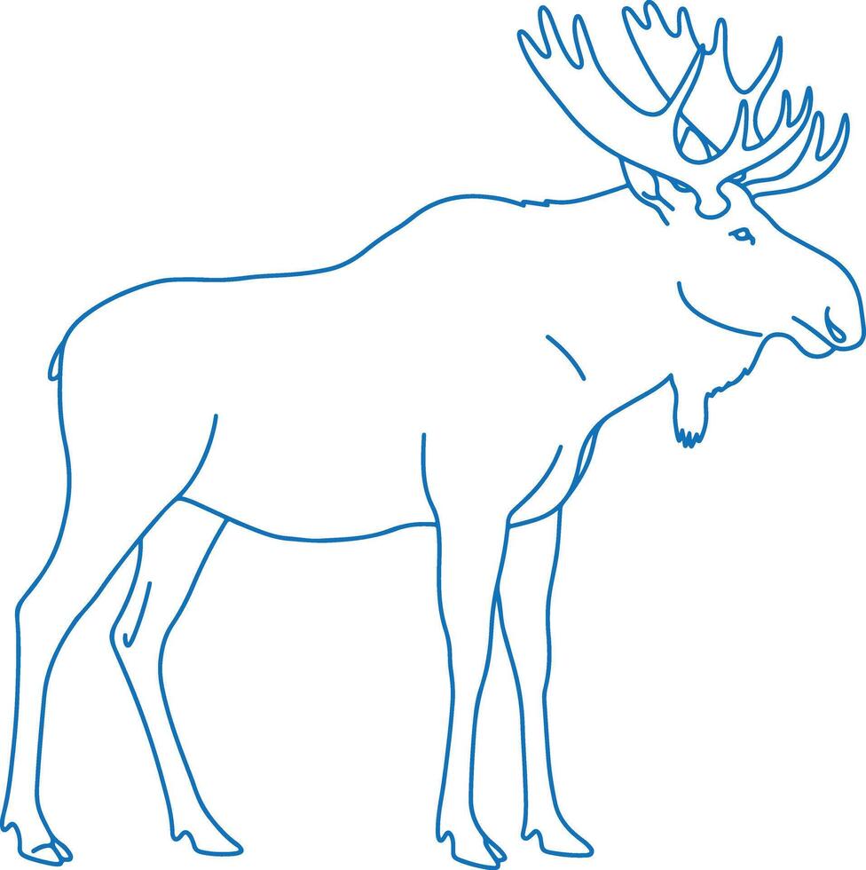 Minimalist one-line drawing of a moose with large antlers in a simple artistic outline style Pro Vector