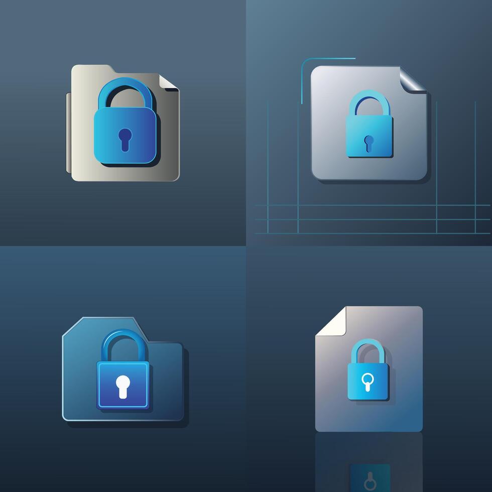 Secure Folder and Locked File Icons - Cyber Security Set Pro Vector