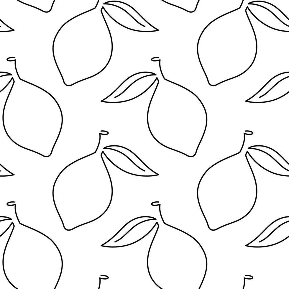 Lemon with leaf fruit seamless pattern. Single line illustration. Line art lemon. One line lemon texture. Outline fruit isolated on white background. Textile, fabric, texture design Pro Vector