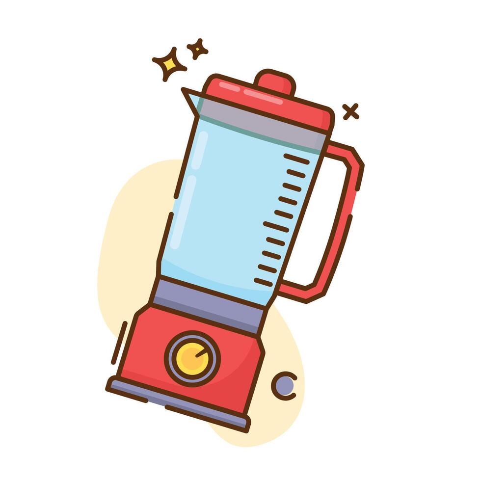 The image shows a cartoon illustration of a blender. The blender has a red base with a round yellow button and a light purple trim. Pro Vector