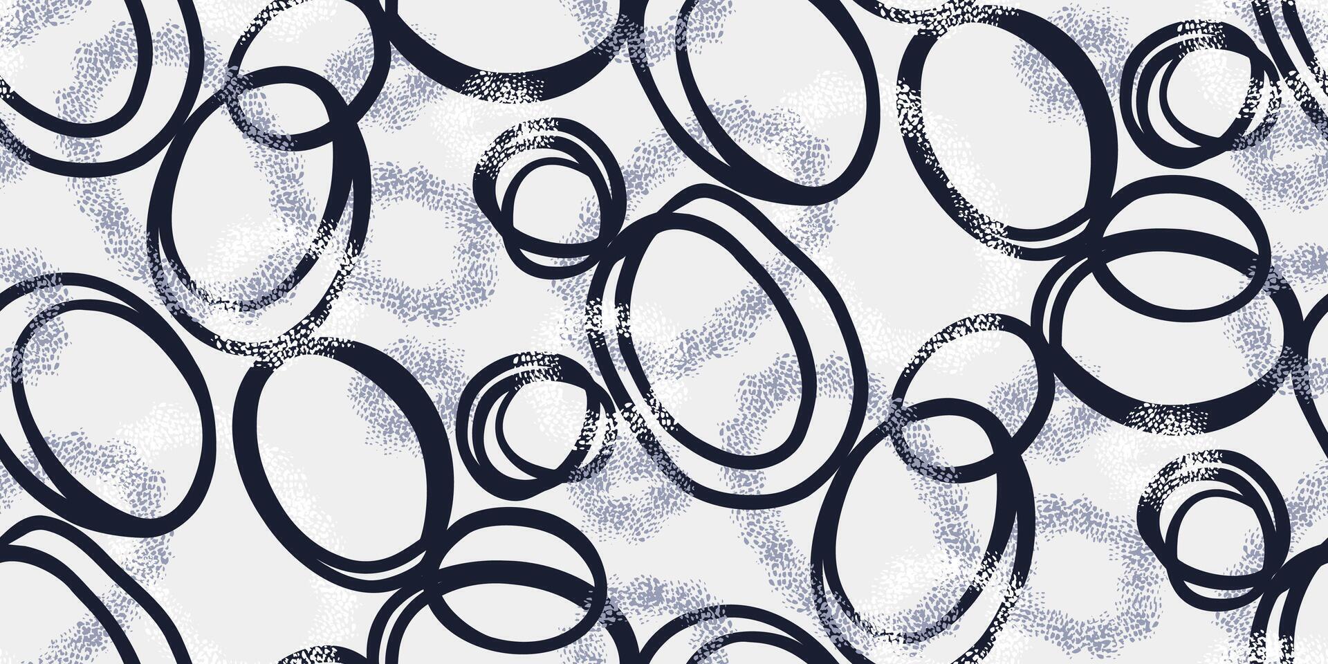 Seamless pattern with abstract black oval shapes on a light background, accented with textured grey and white dots. Dynamic and modern design, suitable for fabric, wrapping paper, digital vector