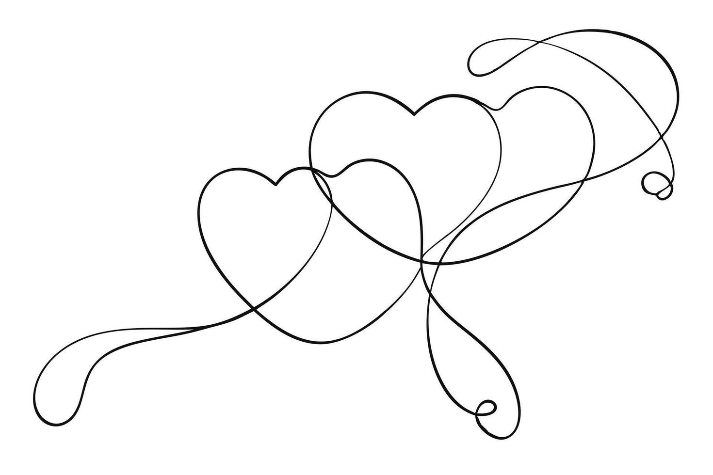 Continuous Line Drawing of Hearts, Romantic Linear Design on Transparent Background vector