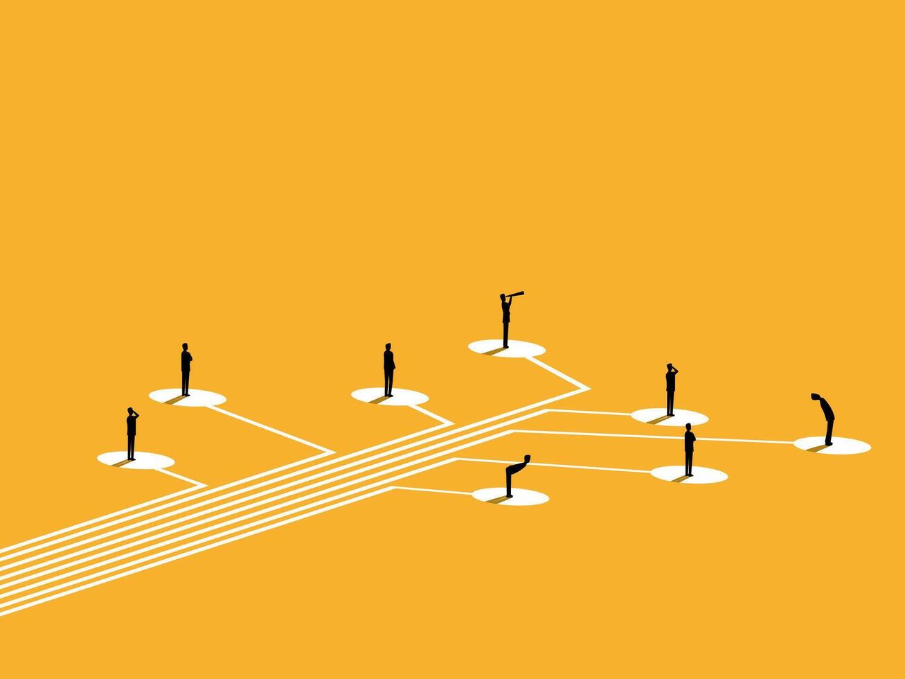 Links, Networks, Recruiting. Group of Businessmen Standing on a Logical Tree Pro Vector