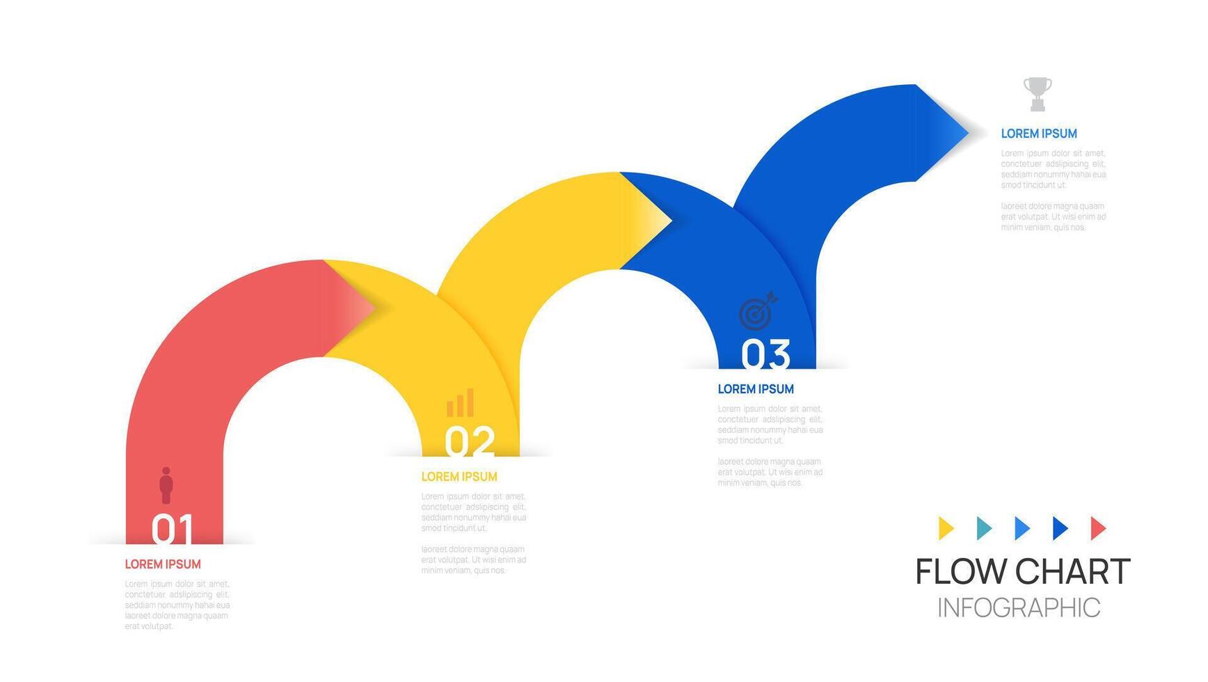 Infographic flow chart arrow business template with icons and 3 options or steps design. Pro Vector
