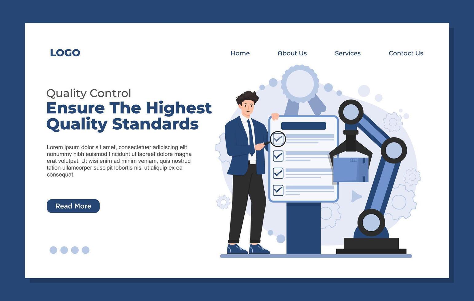 landing page template of engineering and artificial intelligence. Quality control concept Pro Vector