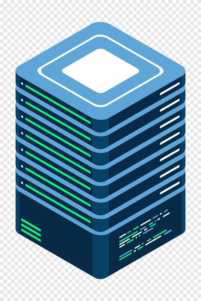 Isometric server. Network server. 3D computer equipment. Storage database. Isometric technology. illustration, Pro Vector