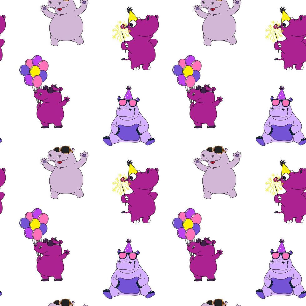 Seamless pattern with Adorable Hippo Character Set With Festive Hats and Celebration Vibes Pro Vector