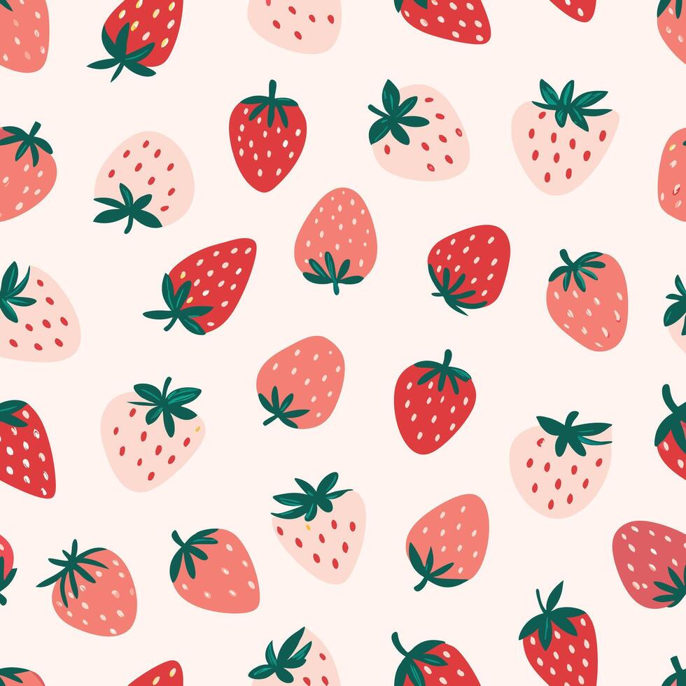 A delightful pattern of red and pink strawberries on a white background a charming summery design perfect for textiles and fabrics Free Vector