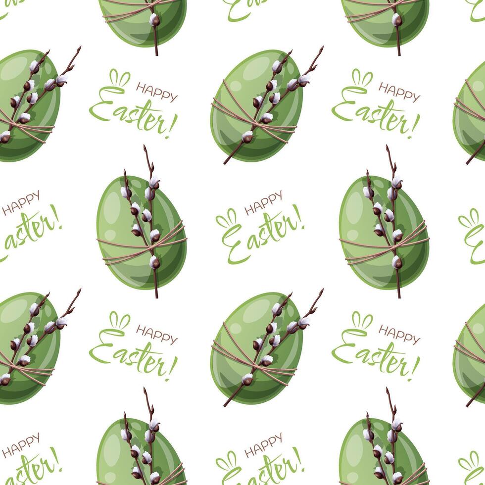 Seamless Pattern with Easter Egg and Willow Branches. Easter Background for Fabric, Wallpaper, Wrapping Paper Pro Vector