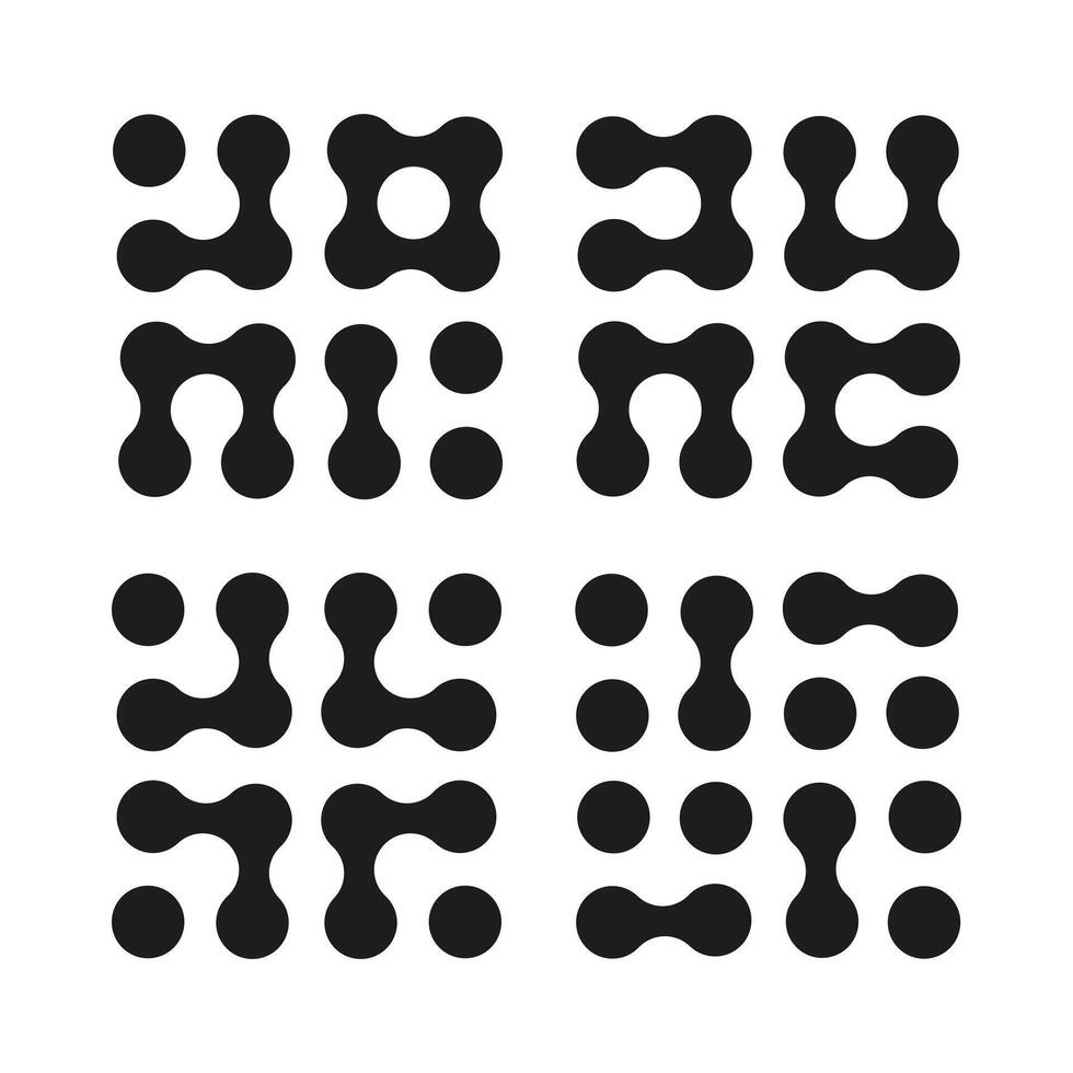 Metaball icons. Connected dots symbols set isolated on white backdrop. Abstract circles seamless pattern. Design minimalist element. Graphic template. Logo design pattern. Pro Vector
