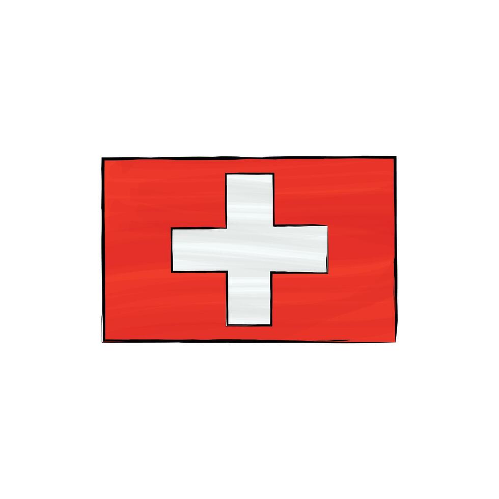 Flag of Switzerland with outline on a white background. Hand-drawn illustration in sketch style. Isolated image, perfect for posters, web design, education, infographics, prints, and presentations. Pro Vector
