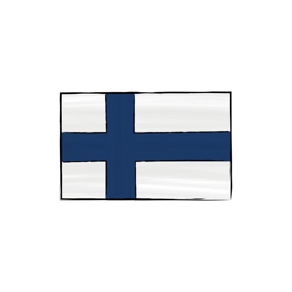 Flag of Finland with outline on a white background. Hand-drawn illustration in sketch style. Isolated image, perfect for posters, web design, education, infographics, prints, and presentations. Pro Vector