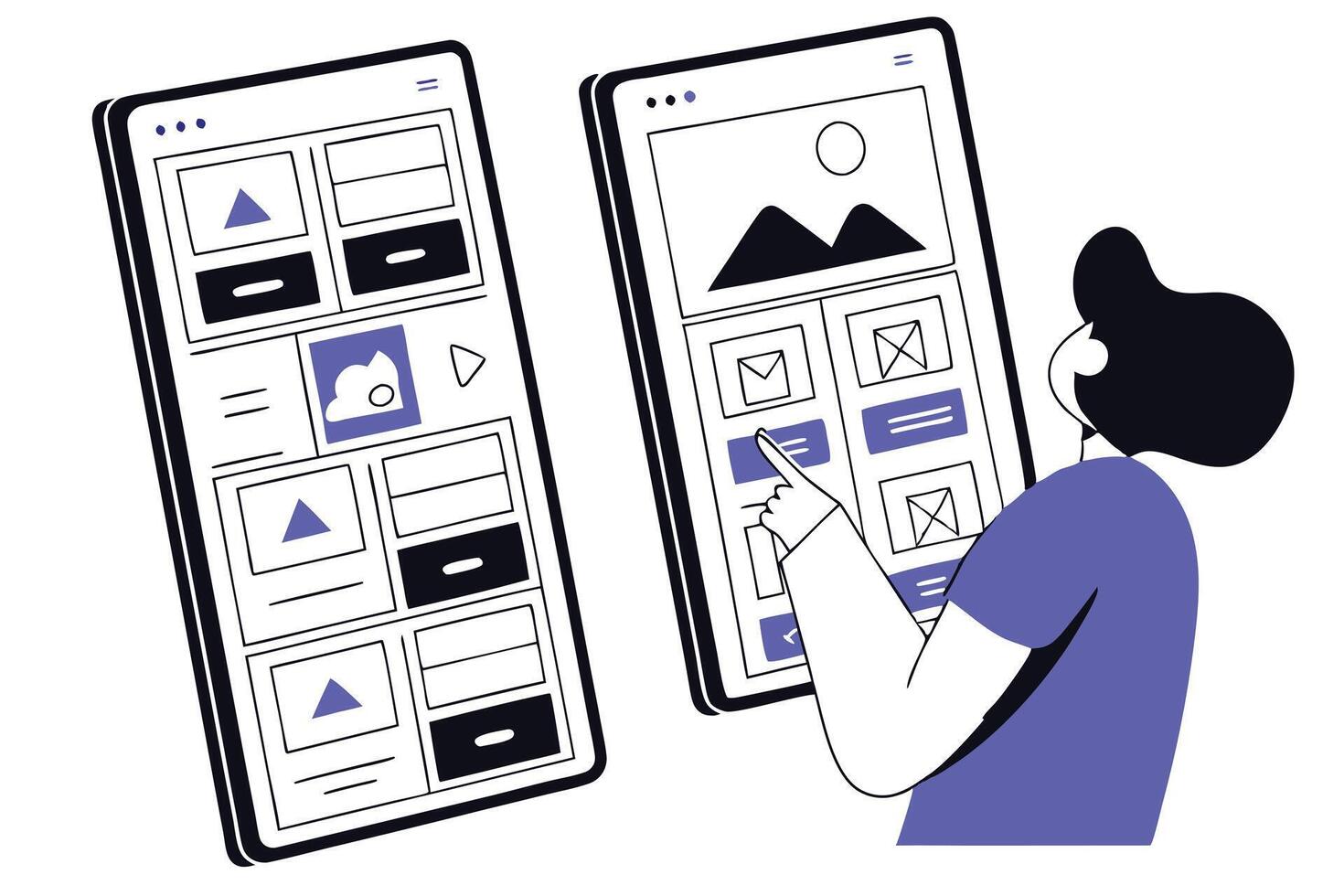 Person Interface Touchscreen Interaction , Website Wireframe Sketch, Mobile Layout Design vector