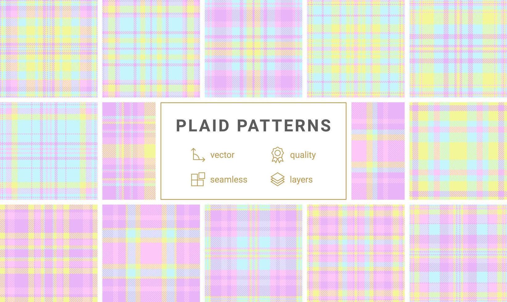 A geometric plaid collection with a mix of textured check patterns, ideal for fabric prints, rustic backgrounds, and British-style clothing. Pro Vector