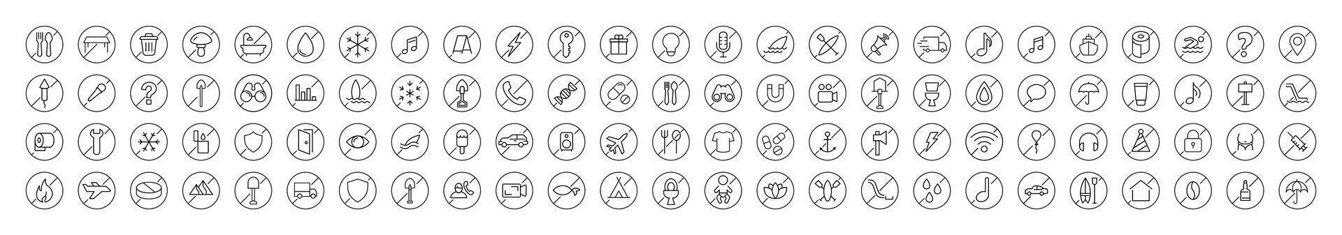 Bundle of Forbidden Related Line Icons. Outline Signs for Graphic and Web Design, Apps, Adverts, Various Cards Pro Vector