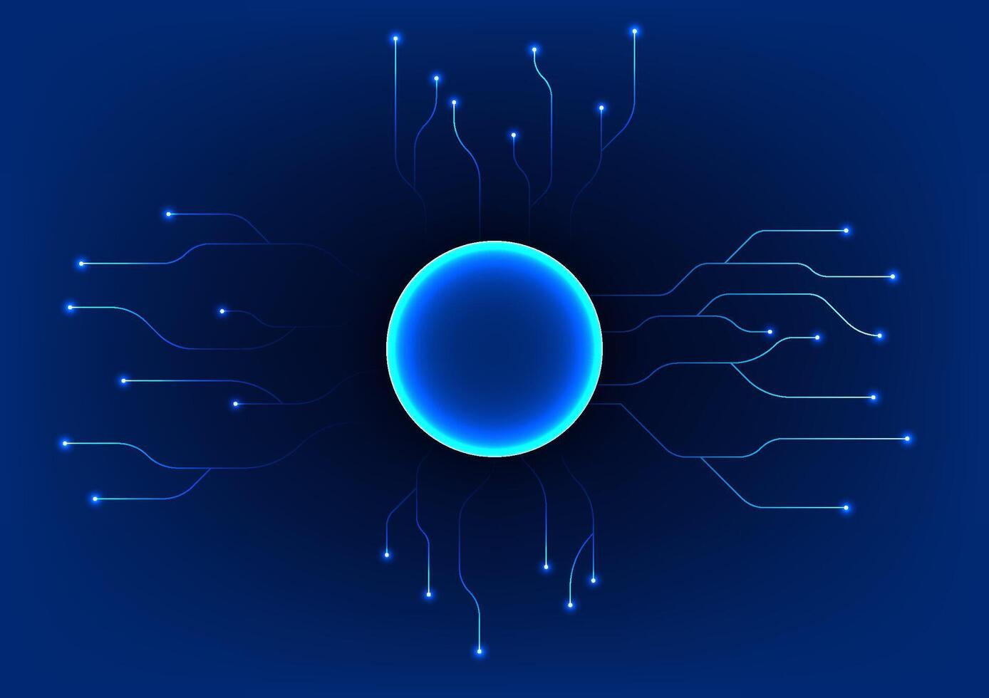 Quantum technology, a circular shape that distributes data lines, processes massive amounts of data, unlocking new potential in AI, cryptography, and molecular simulations in science. Pro Vector