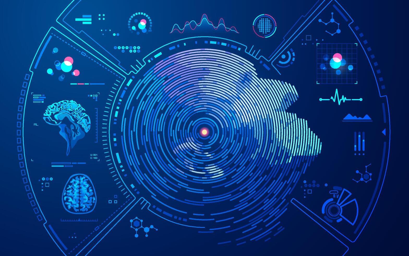 concept of healthcare technology or telemedicine, graphic of MRI brain scan interface with neurology element Pro Vector