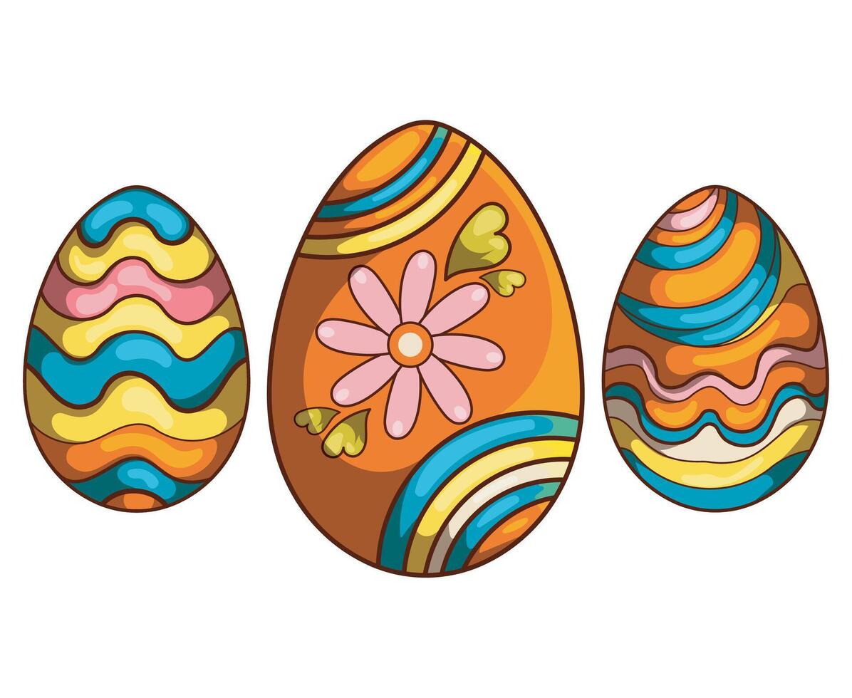 Psychedelic Easter eggs decorated with floral and wavy patterns displayed together on a white background Pro Vector