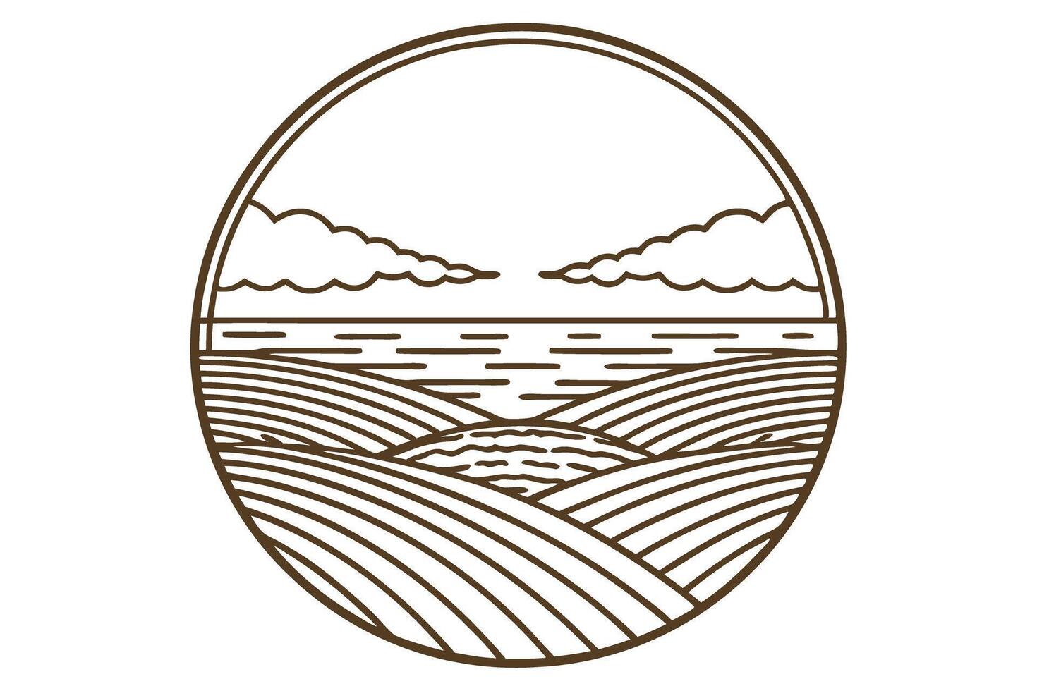 minimalist landscape line art with fields and clouds simple horizon design Pro Vector